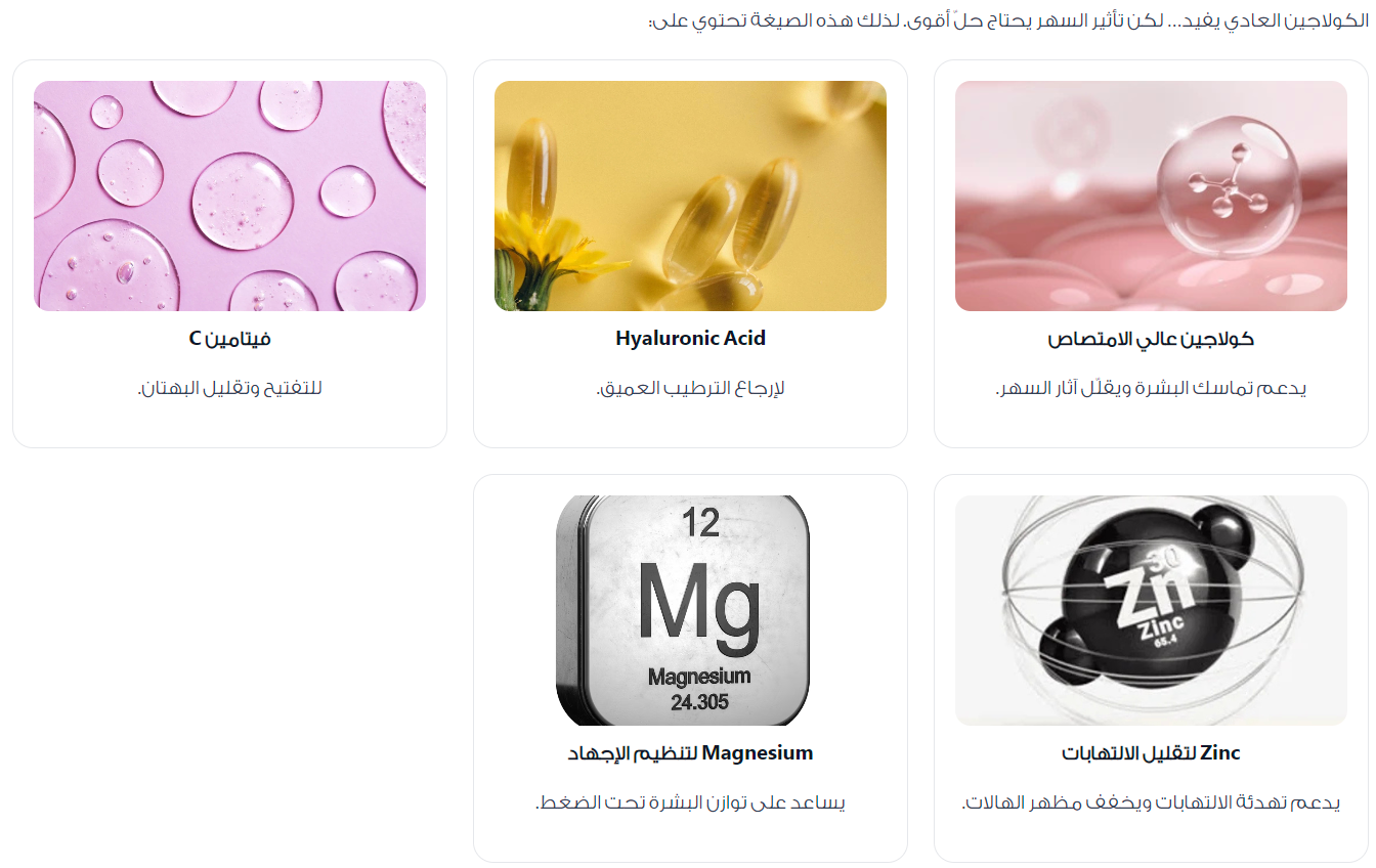 ✅ تعزيز الكولاجين: لمحاربة التجاعيد وشد البشرة بشكل طبيعي.